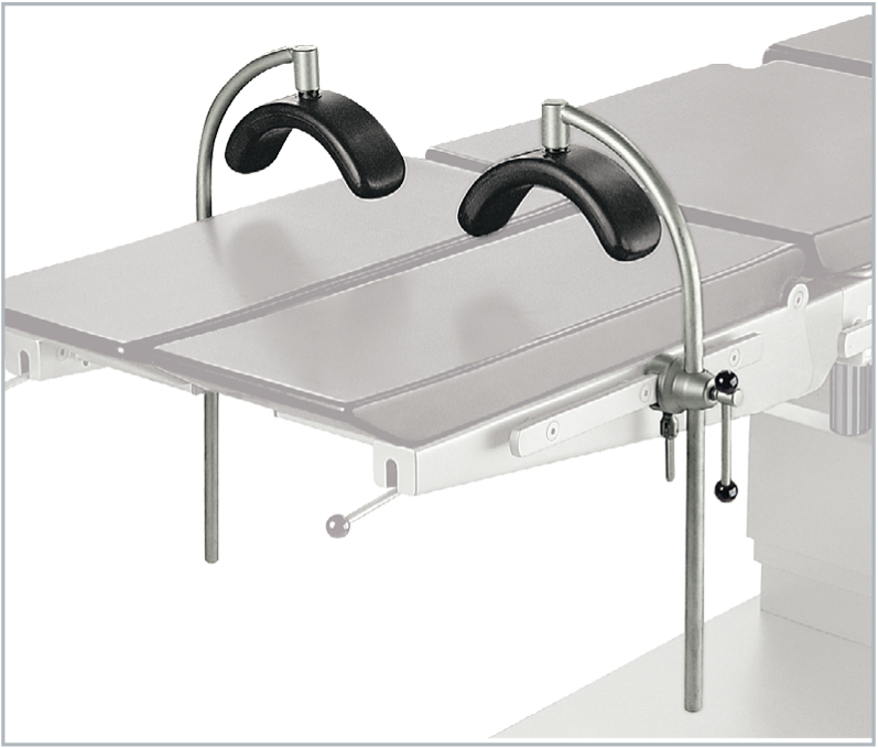 Состоит из полиуретанового литого (бесшовного) матраца, охватывающего голень, и опорной части, изготовленной из нержавеющей стали, обеспечивающей регулировку высоты.