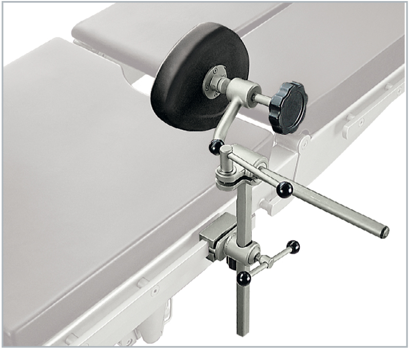 Шариковый шарнир и Г-образно изогнутая штанга позволяют идеально адаптировать прижатие упора к телу пациента
