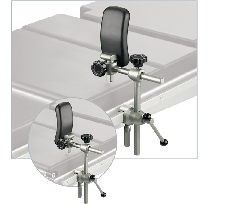 Служат для стабилизации пациента в положении лежа со стороны плеч или сбоку. Каждый упор состоит из полиуретанового литого (бесшовного) анатомически изогнутого матраца прямоугольной формы (24мм х 70мм х 152мм) и опорной части, изготовленной из нержавеющей стали с матовой отделкой.